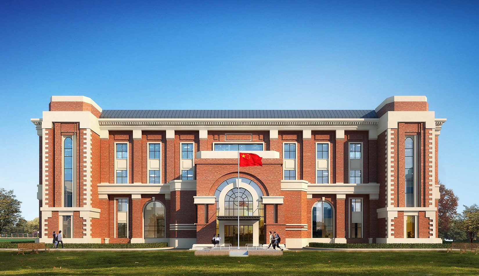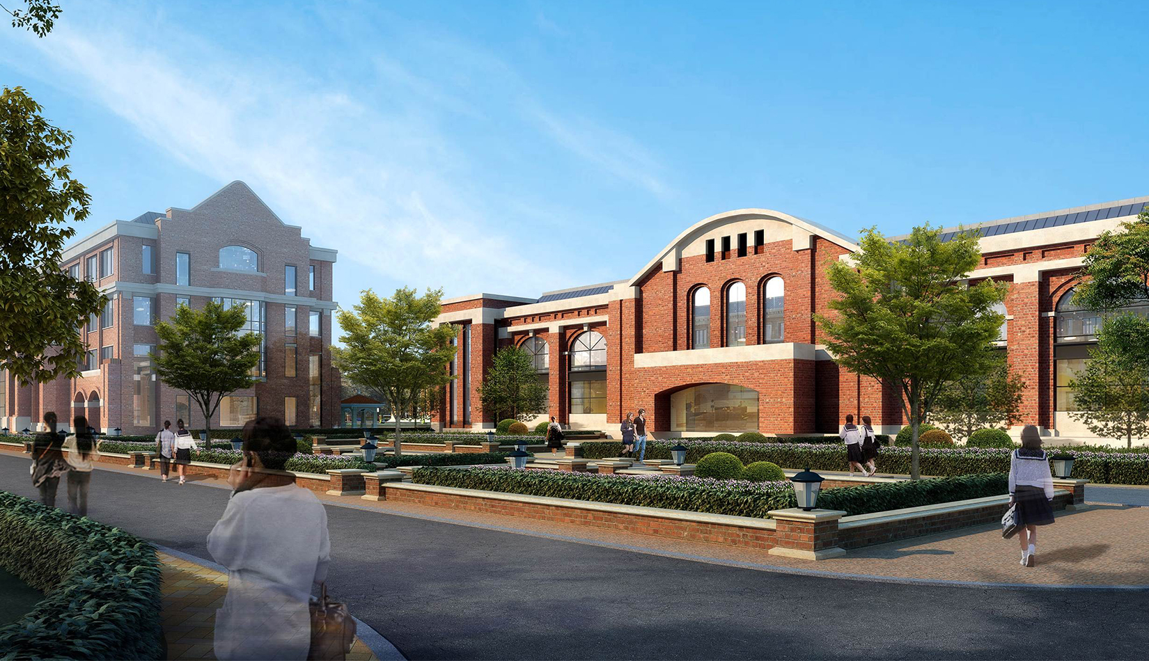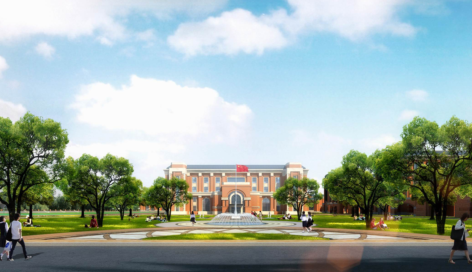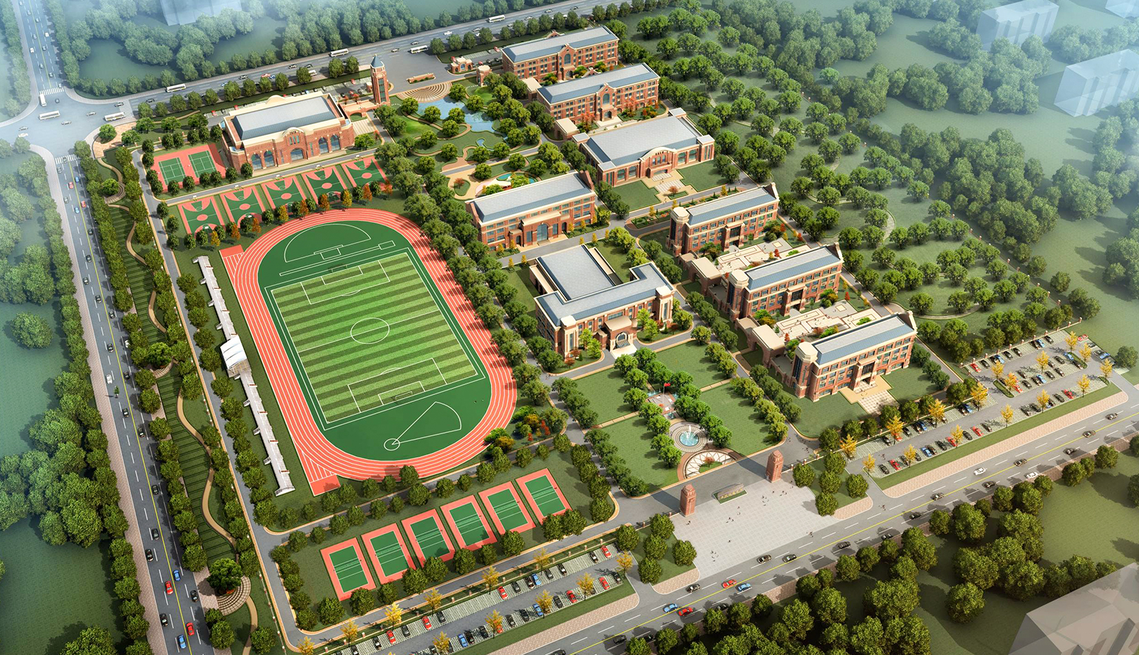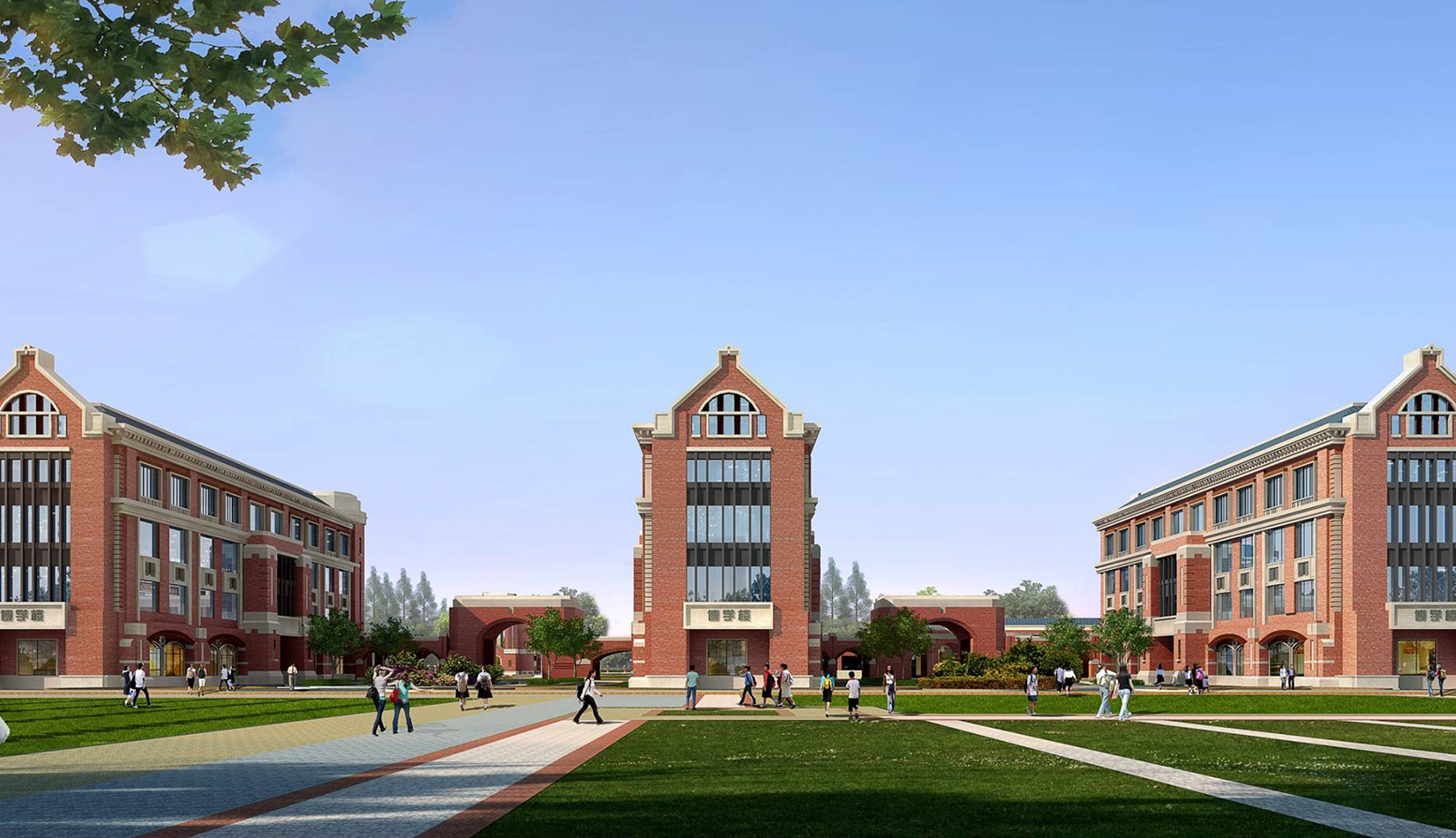 分區設計上,采用了“前場后園”的設計手法。前區以教學區為主,圍繞中心圖書綜合樓形成前區禮儀性廣場,同時以中軸對稱為原則,體現了教學的嚴肅性與秩序性;各個教學單元以年級、功能就近布置為基本原則,以中國傳統的“院落”形式進行組合,后院生活區借鑒了“山水園林”的布局手法,結合中心景觀,進行自由化布局,達到景入園中、人在景中生活場景,使學生在學習之余,得到充分的放松。