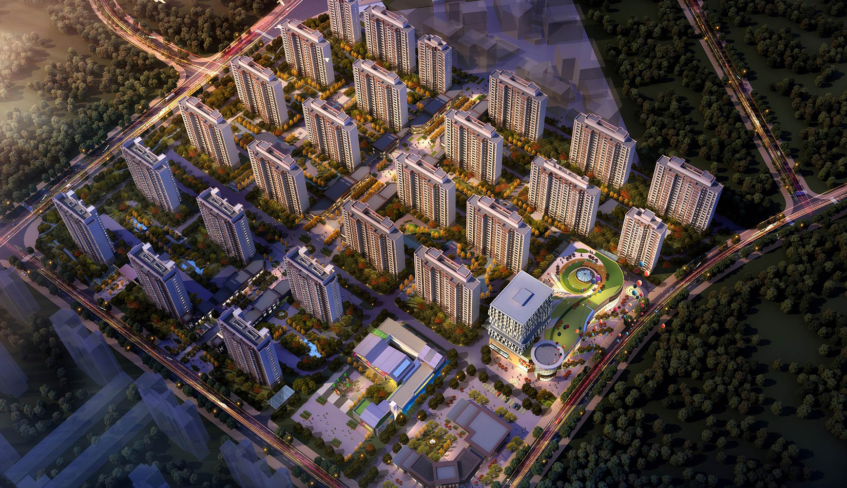 總體規劃采用街區制組團劃分,以“窄馬路、密路網”為設計向導,引入三條城市道路。合理劃分七個功能組團,營造宜人的居住尺度。遵循安置社區資源均好性原則,使用行列式建筑布局,符合相關日照規范。充分利用“金角銀邊”商業定理,采用集中布局與沿街布局兩種商業布局,注入更多商業街區活力。