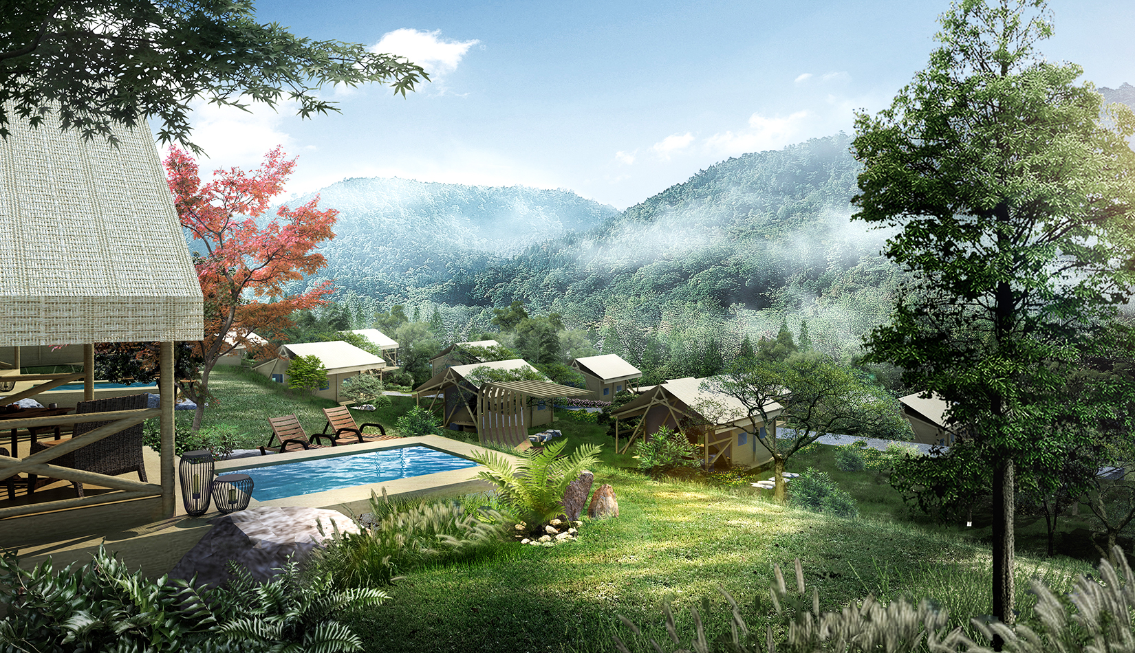 景觀設計從野奢度假酒店的“野”和“奢”兩字入手,融入荒野生態的設計理念,又要與場地相融合、與原生態相映、與當地的民俗風情相交匯,突出當地的文化主題,強調高品質的自然、野奢度假,從而打造出一個具備個性與特色,使游客能夠享受到自然野趣體驗的景觀環境。