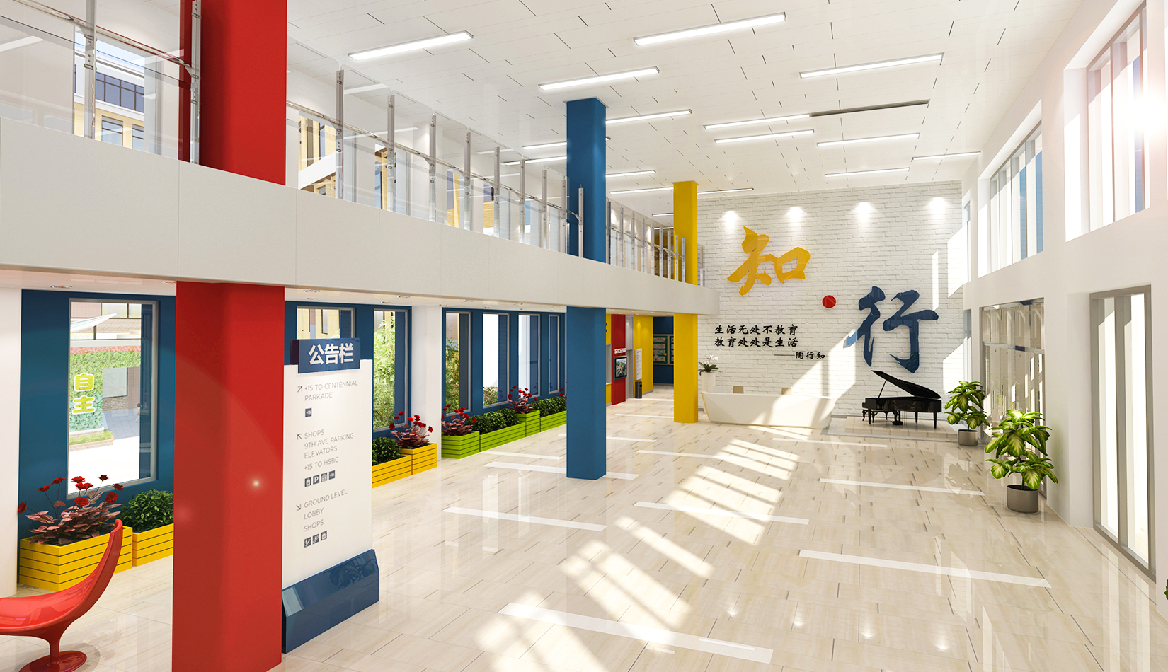 寧夏路小學作為市南區國際二代學校重點學區,其總體室內設計風格延續了高起點規劃,不僅與校園文化產業內涵相融合,而且充分表達出具有一流創新、高端的內質與品位。