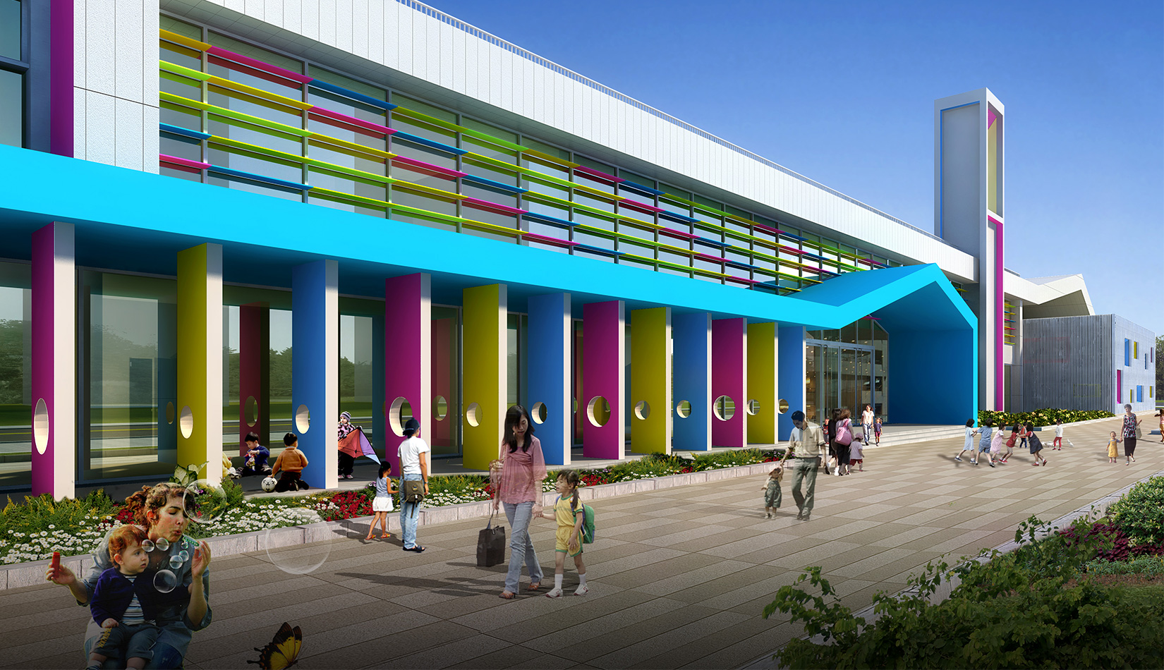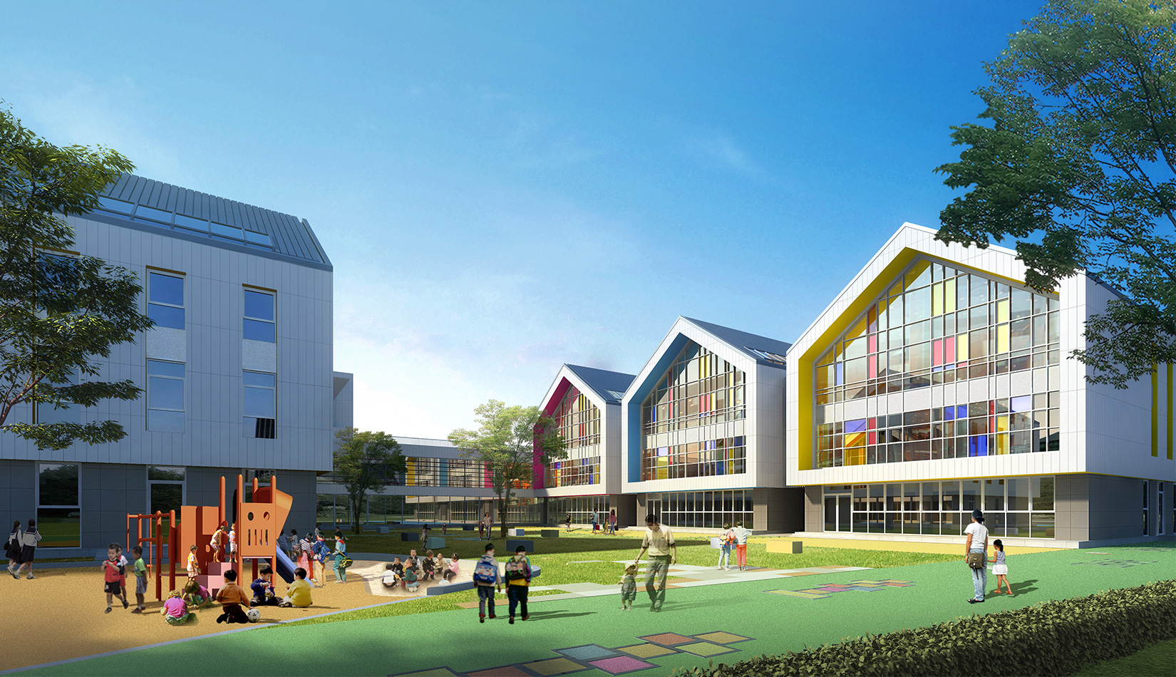幼兒園作為兒童開始社交活動、培養社交能力的起始點,給孩子帶來的第一感受是陌生的、復雜的,而營造像“家”一樣自然舒適的環境有利于減少這樣的陌生感與距離感。本案設計中,通過將“坡屋頂小盒子”的家的形象代入幼兒單元的形象設計,來營造這樣一種氛圍,讓幼兒園成為孩子們的第二個家。