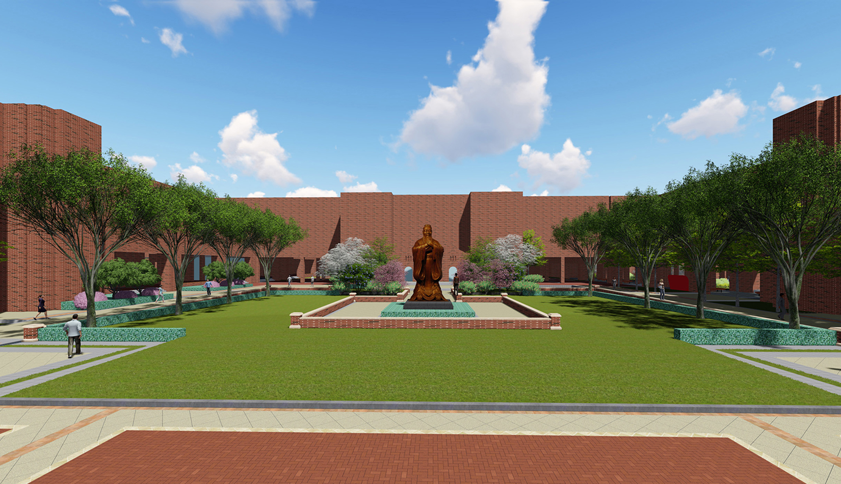 書院式的校園景觀規劃強調空間的交往性,校園生活分為三種,我們的設計原則是將三種生活方式,在一個春有綠,夏有蔭,秋有果,冬有青的生活環境中表現出來,同時校園不僅是傳授知識職能的教育場所,也是陶冶性情全面發展的生活環境。校園通過環境的景觀化處理使校園在滿足感官愉悅的同時,為校內師生提供娛樂、交流、休閑的場所,達到舒緩壓力、疏松心理的作用,具有人文韻味的景觀還寓教于樂。