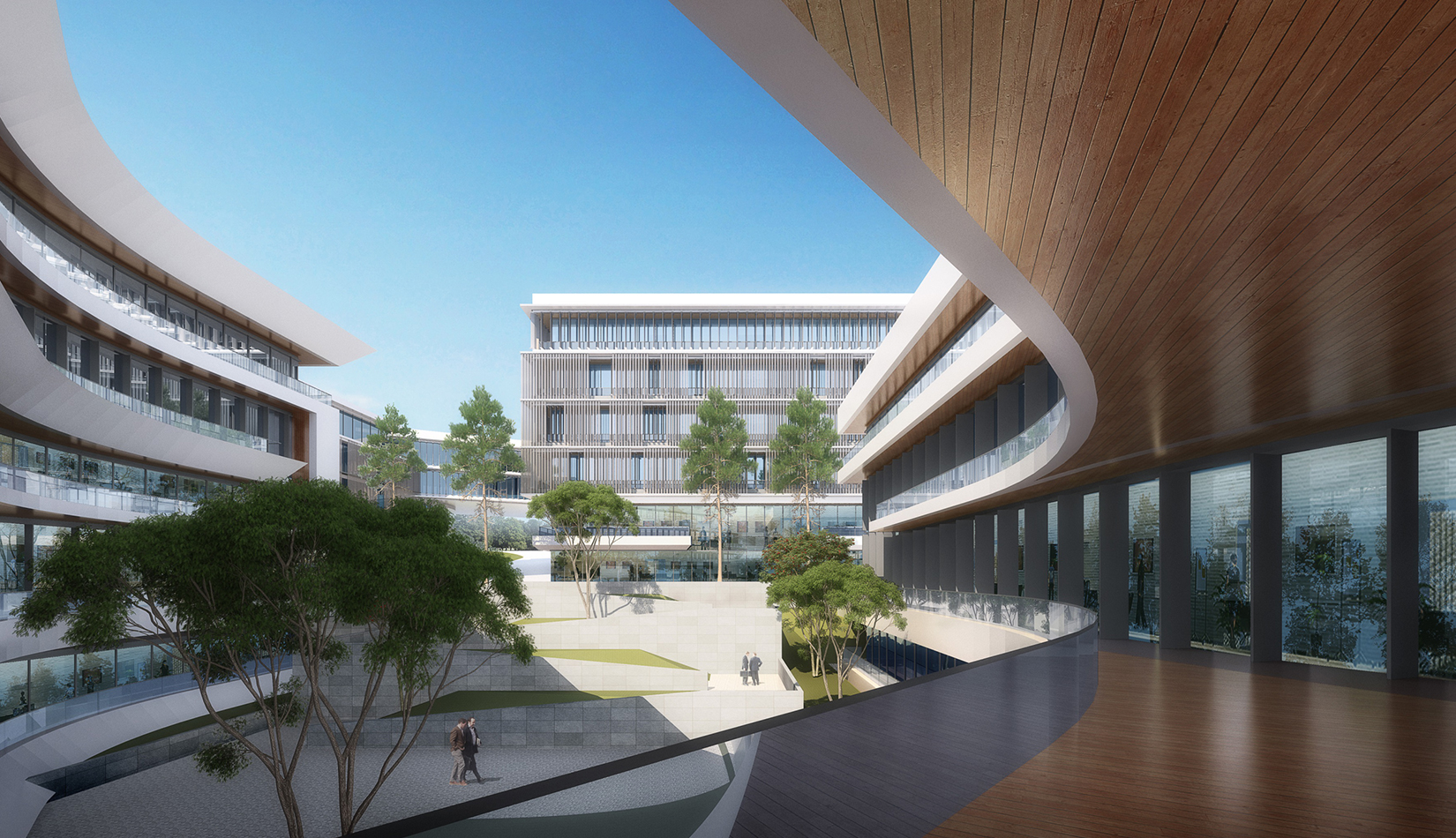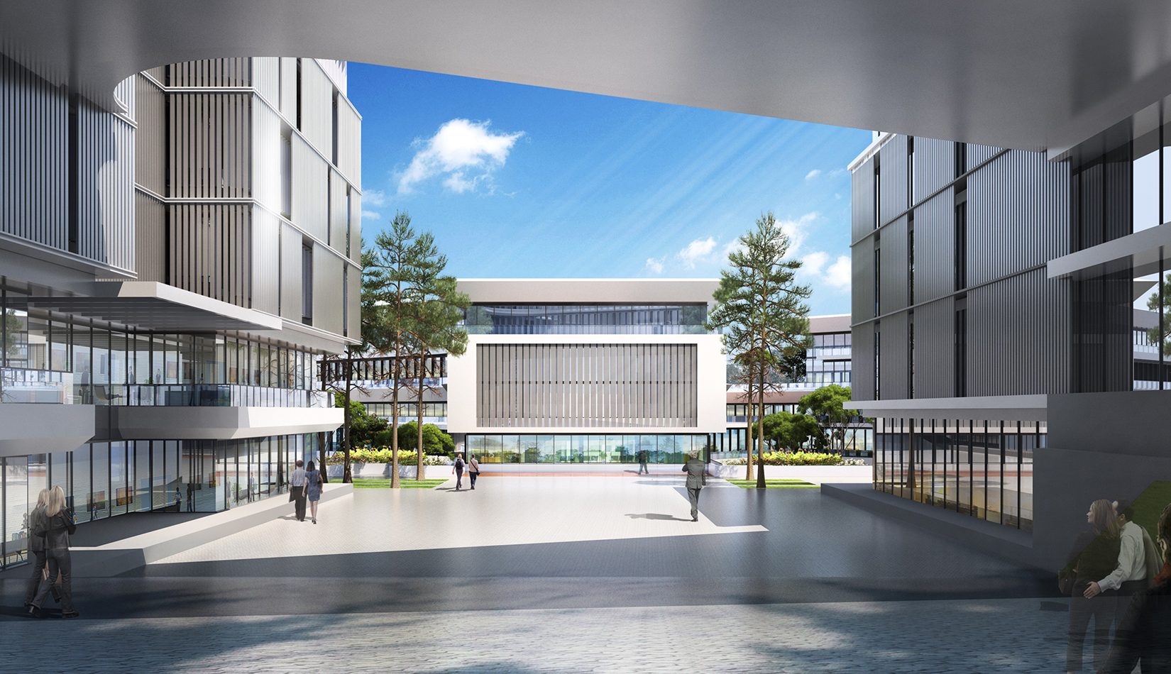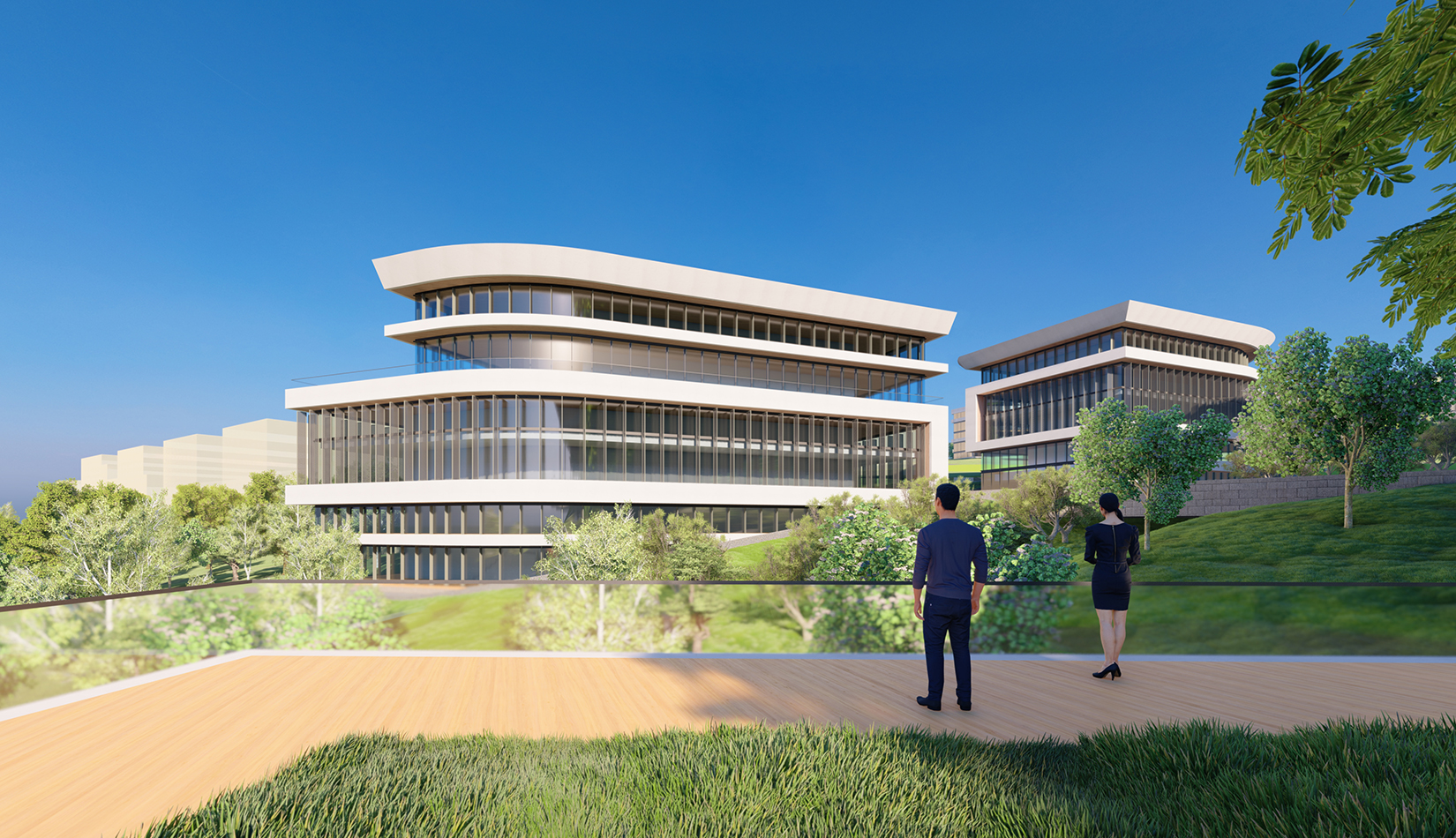 簡(jiǎn)潔大氣的豎向橫向劃分,使MECS主樓充滿海洋氣息;白色流線型屋頂順應(yīng)地勢(shì),自由舒展。流線型的體塊靠近海岸線,表達(dá)科研人員的探索精神,并且與地勢(shì)相結(jié)合。