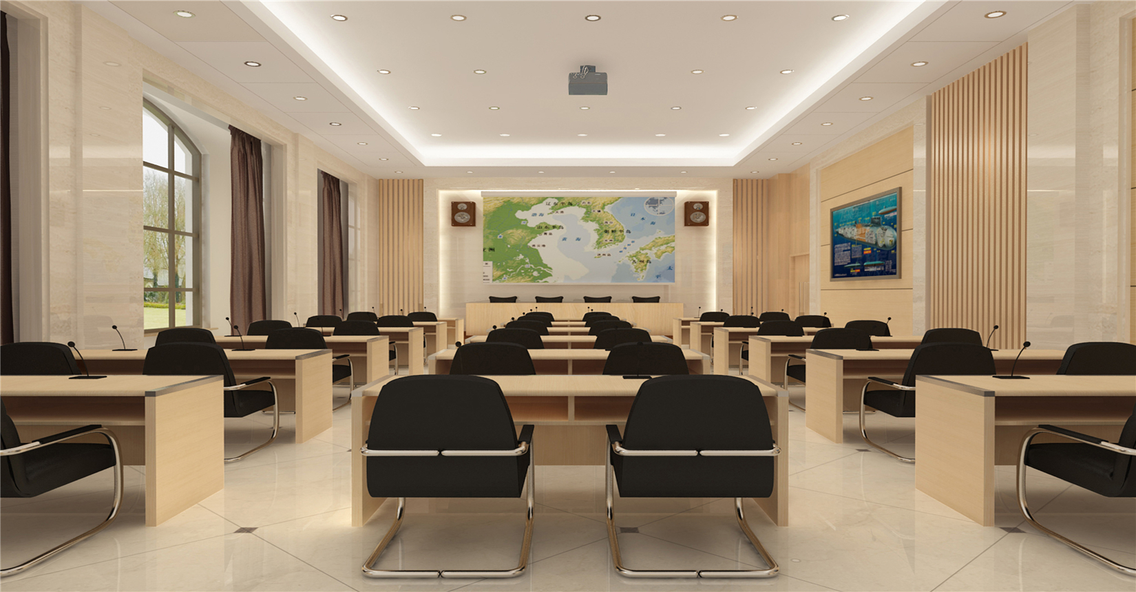 在造型語言上以經典的裝飾語言表達了空間節奏,材質色調的理性而精致。與整體學院風格互為潛透、風格統一、莊重簡潔,力求體現創新、高端,營造卓越的學術氛圍。